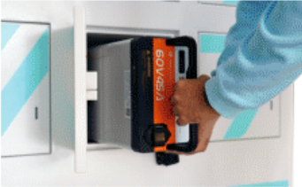 3 - El gabinete te dará una batería cargada para colocar en tu moto y seguir viaje.